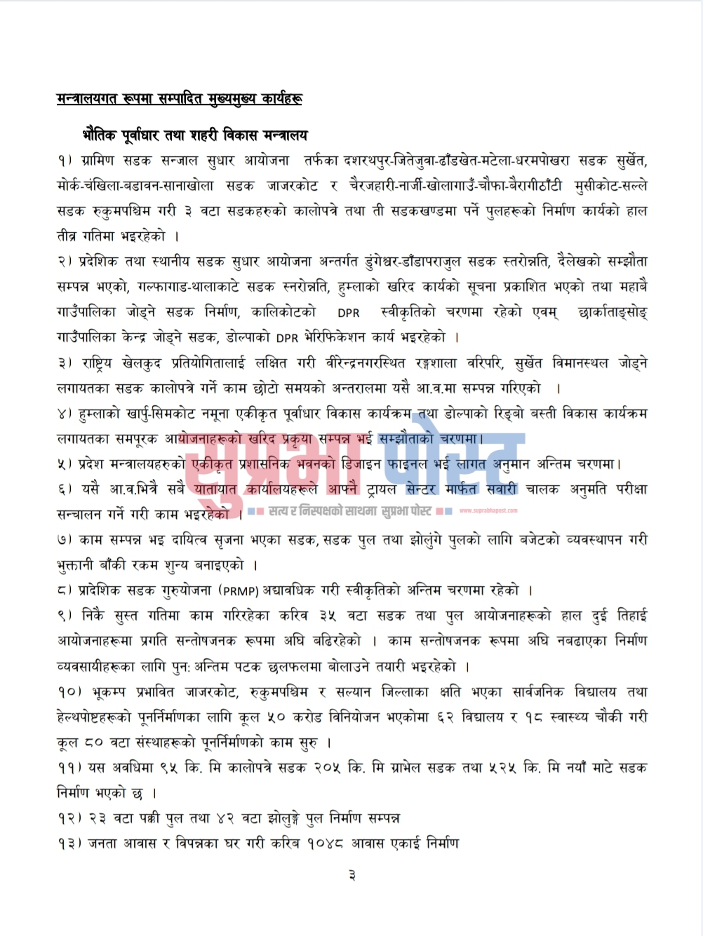 हुम्ला हिल्सा प्रा.लि.को नियमित यात्रुवाहक गाडी बिहीबार बाट संचालनमा आउने भएको छ । उक्त यात्रुवाहक गाडी बिहिवार बिहान ९ बजे हुम्लाको सिमकोटबाट काठमाडौँका लागि...